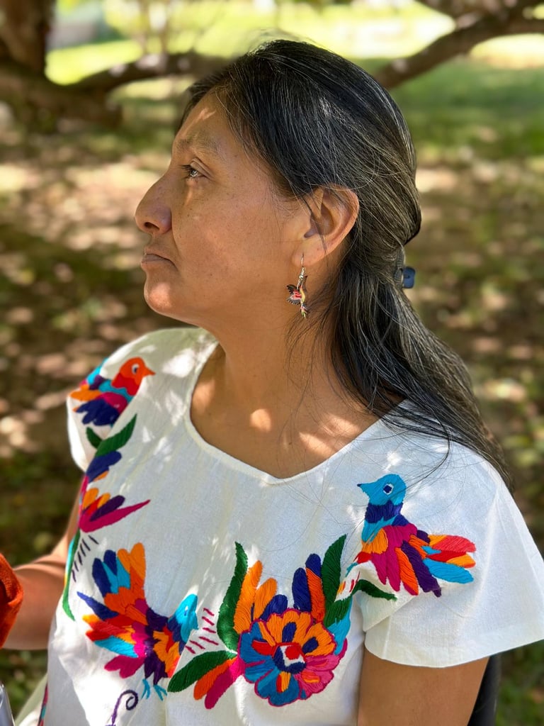 Je suis d’origine Mazatèque, de Huautla de Jiménez, dans le nord de l’État de Oaxaca. C’est une région humide et fertile située à 1800m d’altitude, entre l’État de Puebla et celui de Veracruz. Dans le passé, nous vivions de la culture du café. Aujourd’hui c’est devenu un lieu touristique qui vit en grande partie de la plante sacrée. Je suis mère de trois enfants.